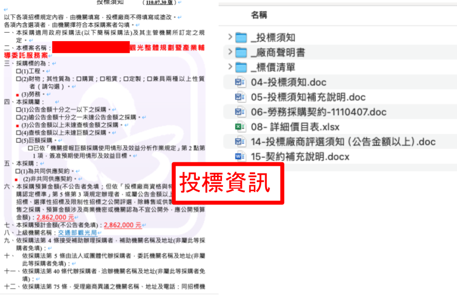 - 3個以上PDF檔或word檔(要可選取文字),例如:邀標書、公司過往計畫書、服務建議書