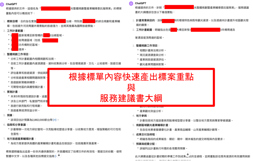 當公部門的標案要求讓您感到困惑時,AI將助您一臂之力,深度解析需求,即使計畫窗口無法提供更多指導,也能輕鬆應對。