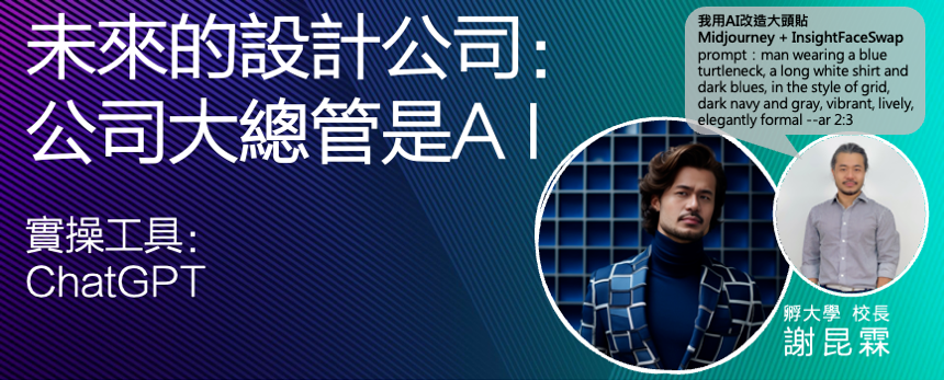 AI產生的衝擊是非常實務面的,關乎成本與效益的。本次孵大學邀請的講者將聚焦在「AI應用於公司經營」議題,很務實地協助室內設計、建築設計的公司們,邁向AI時代的第一步。